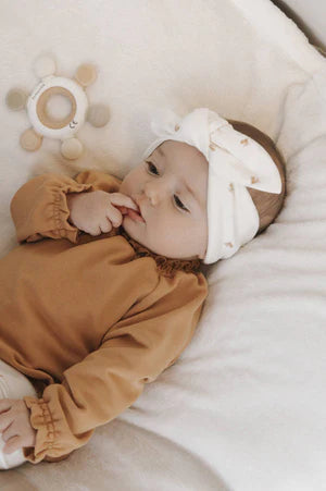La fascia per capelli con nodo di Bamboom è l’accessorio perfetto per donare un tocco di dolcezza e stile ai look delle più piccole. E'ì soffice e delicata sulla pelle, evitando fastidi anche dopo un uso prolungato.