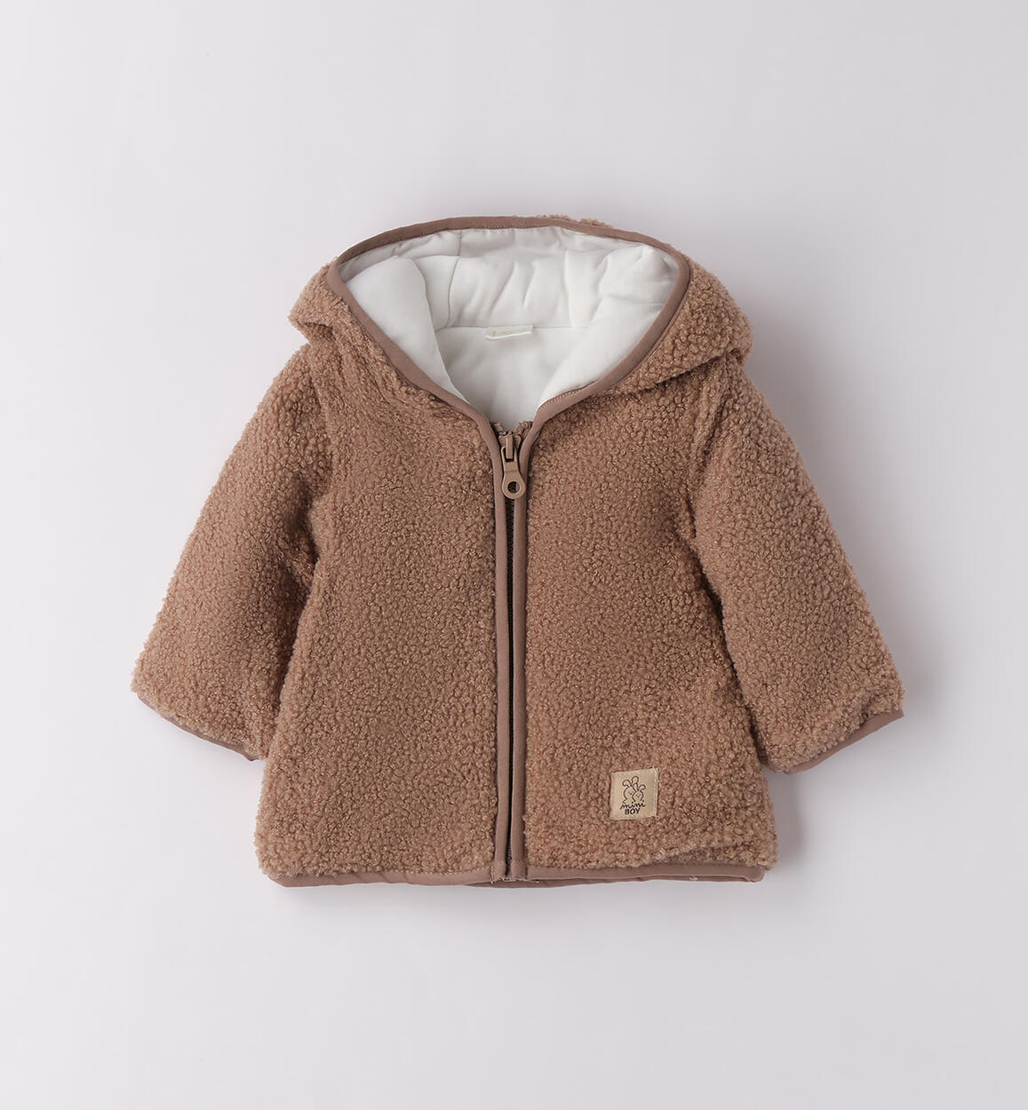 Teddy neonato iDO 1-24 mesi realizzato in caldo e morbido tessuto con fodera in cotone. Imbottitura in ovatta. Apertura con zip. Modello con cappuccio