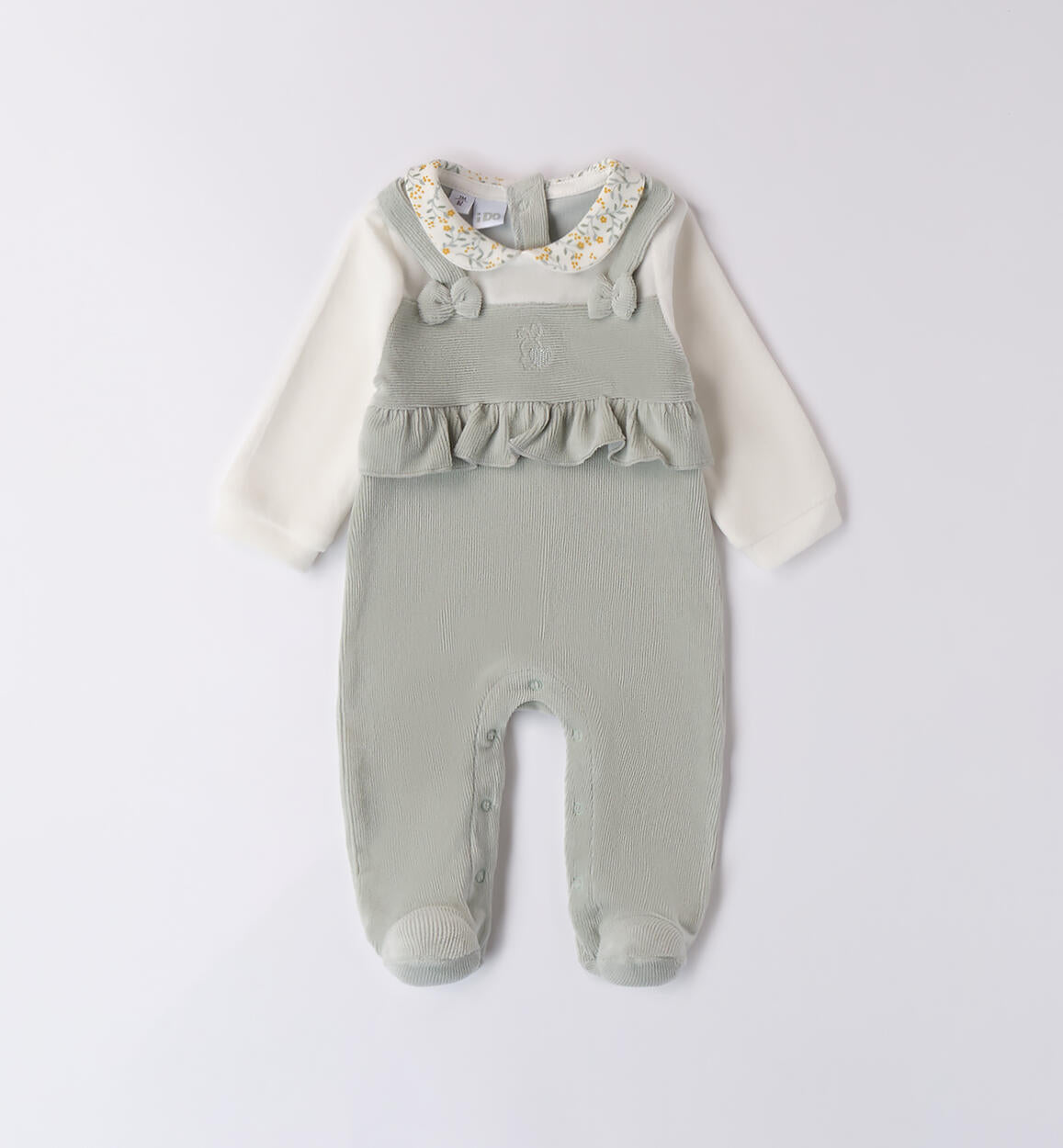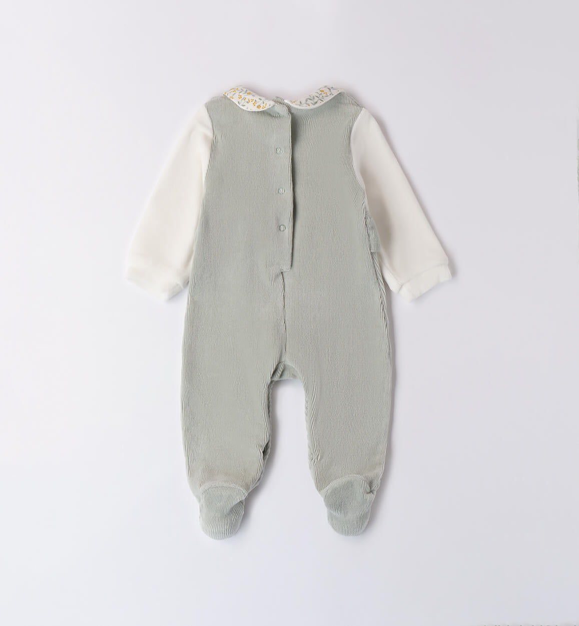 Tutina iDO in calda ciniglia di cotone effetto velluto, con ricamo automobiline, apertura sulla parte davanti e sul cavallo per facilitare il cambio
